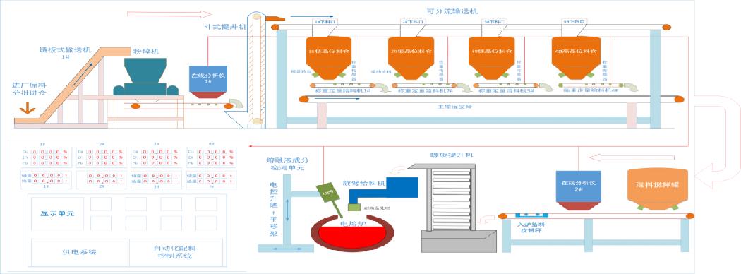 針對目前煉銅原料波動大、檢測手段時(shí)效滯后等問題,采用XRF及LIBS技術(shù),開發(fā)建設(shè)黃銅棒材自動化固廢原材料配料系統(tǒng)和熔爐自動化現(xiàn)場檢測系統(tǒng),實(shí)現(xiàn)其在銅陵有色股份銅冠黃銅棒材有限公司產(chǎn)線應(yīng)用??蓽?zhǔn)確地檢測和有效地把控入爐原料和熔融銅液中的各成分含量,不僅可以提高煉銅過程中黃銅棒的產(chǎn)品質(zhì)量和生產(chǎn)效率,也可大幅度降低煉銅成本,提高企業(yè)生產(chǎn)利潤。
